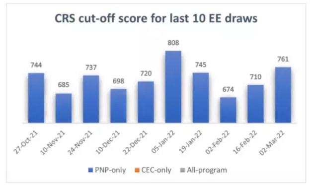 据加拿大移民局消息,联邦快速通道(Express Entry)近日公布了3月份的第一轮移民邀请结果。本轮共有1,047名候选人获得邀请,仅针对省提名类别,最低邀请分数为761分。