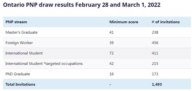2月28日,安大略省移民提名计划(OINP)邀请了173名博士研究生(PhD Grauate)移民候选人;3月1日,安省又向硕士研究生(Masters Grauate)、外国工人(Foreign Worker)和国际学生(International Stuent)候选人发出邀请。