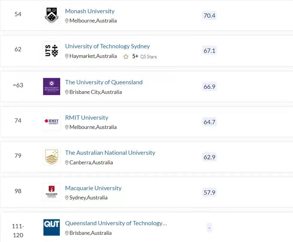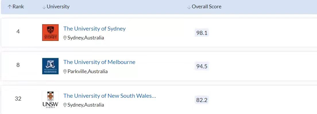 在此次排名中,澳洲高校悉尼大学、墨尔本大学在排名中表现十分优异,稳居世界Top 10、新南威尔士大学在排名中表现也十分突出,冲进世界TOP50,同时今年澳洲冲进世界榜单TOP100的院校共有9所,也是创下近两年的最好成绩,可喜可贺。