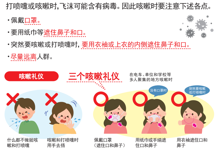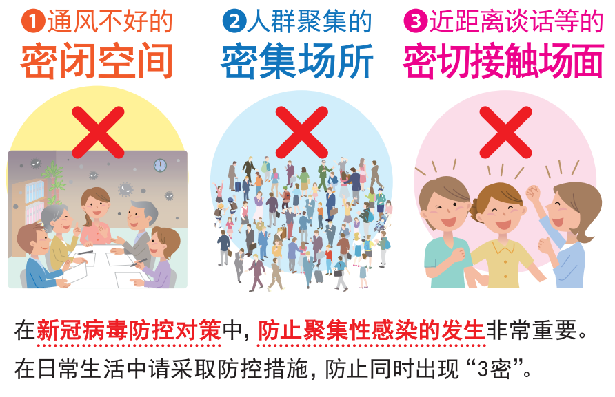 防止感染的三个基本要素:保持距离、戴口罩、勤洗手