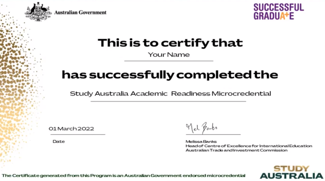 留学澳大利亚学术预备微学分课程与就业预备微学分课程 由澳大利亚贸易投资委员会(Austrae)与Successful Grauate合作打造 ,是一个提供高含金量培训课程。旨在帮助莘莘学子了解澳大利亚教育系统,掌握干货求职技能,确保在澳留学见的学习质量,实现自己的职业理想的绝佳平台。