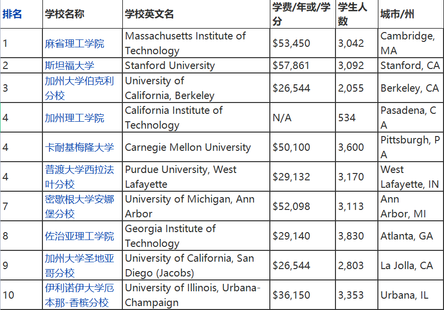 排名和前几年并没有太大变化,MIT还是一枝独秀啊!
