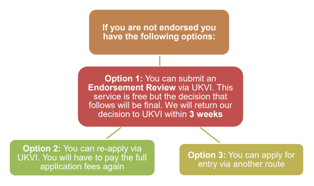 英格兰艺术委员会对于文化艺术类申请的审理时间在 8周以内 。在申请人成功取得担保之后,第二阶段的审理将由 英国移民局 进行,审理时间同样为8周以内。