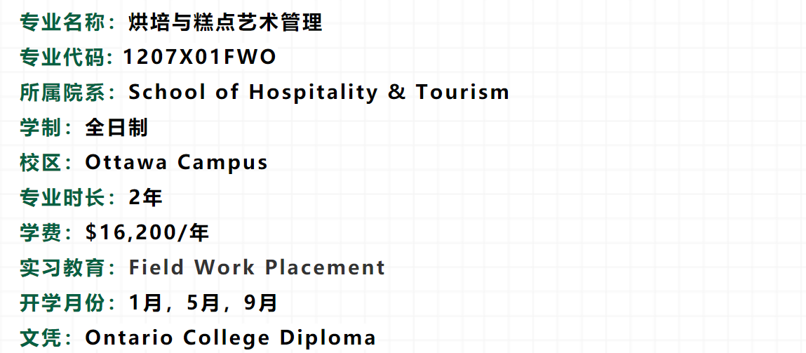 学生还将学习创业与管理相关知识,包括商业规划、销售与成本预测、劳务分配、市场营销及专业烘焙门店的日常运营管理等。该专业提供120小时现场实习机会,学生也可参加企业及社区举办的各类烘培比赛及活动。