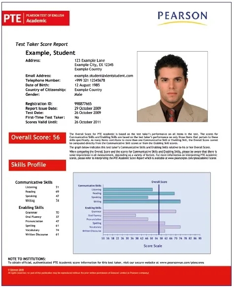 全场考试需一次完成,考试总时间约为三个小时。 每台考试终端计算机的屏幕上都有计时显示,提醒考生每节考试剩余的答题时间。整个考试分成说写,阅读和听力三个部分。除此之外,还有一个短暂的自我介绍以及10分钟的选择性休息。除考试成绩以外,考生会获得一份详细的成绩报告单,包括考生的个人信息和照片,考生的总分,以及各部分的分项成绩。这有助于考生了解自己的优势和薄弱环节,以便在今后的学习中将重点放在需要提高的方面。