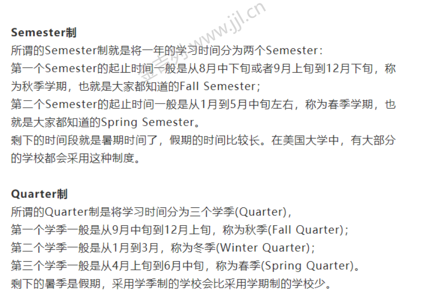 在美国,不同大学所采取的校历制度也是不一样的,但是通常所采用的两种制度是Semester制和Quarter制。