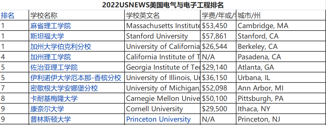 > 2022年美国电子工程专业前十排名