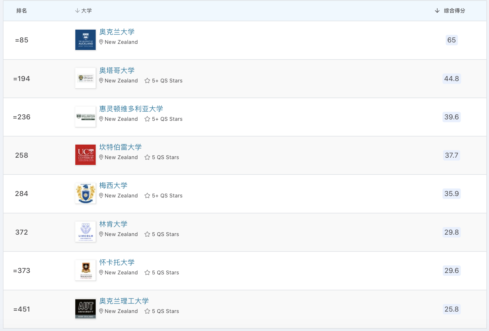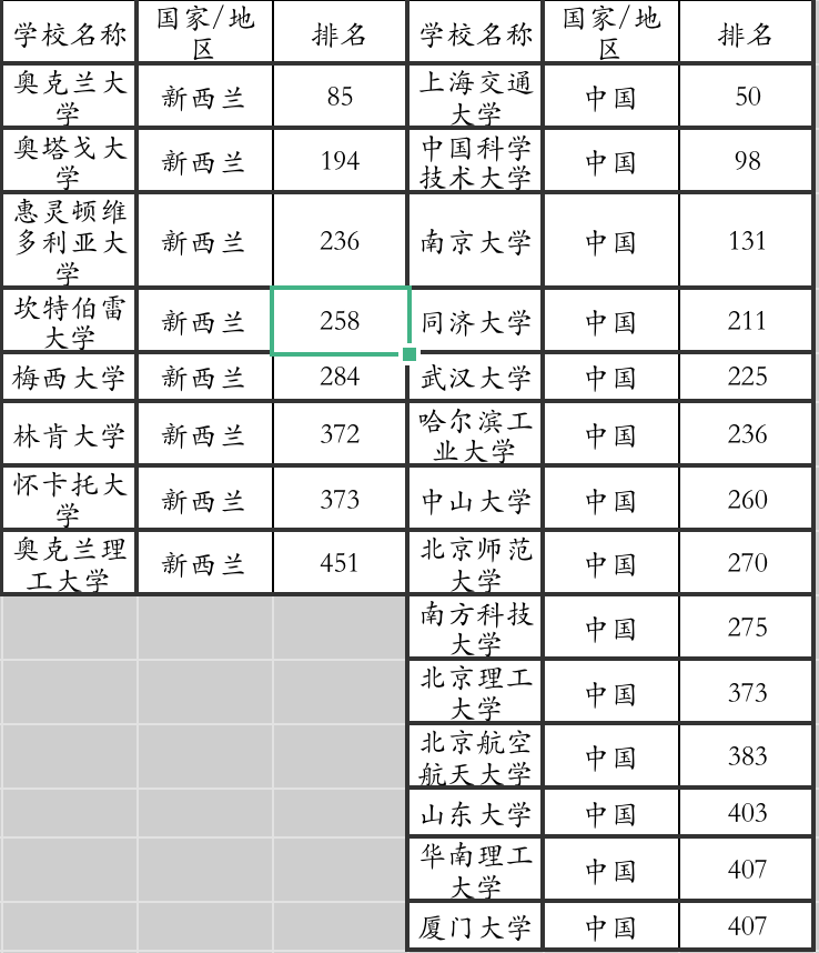 2022年世界大学QS排名解析(新西兰篇)