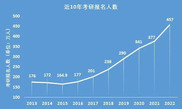 据据教育部发文,2022研究生招生考试共有457万人报考,较比去年增加了80万,报名总数和增量都创历史新高。