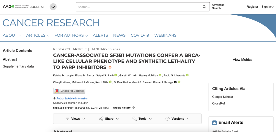 这次研究成果发表在美国癌症研究协会期刊《癌症研究》,指出SF3B1突变通过破坏DNA,阻止其正常修复,并阻止其自身的正常复制,与BRCA1基因缺陷的情况相似。PARP抑制剂针对细胞的DNA修复工具,将它们锁定在DNA上,阻止DNA修复,导致癌细胞死亡。