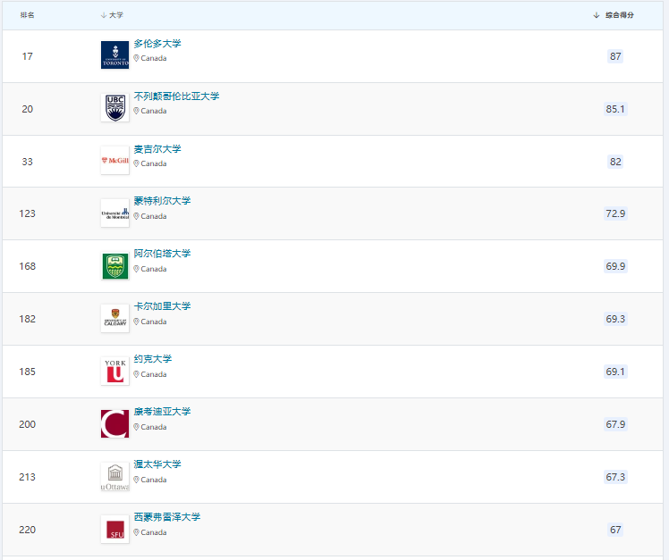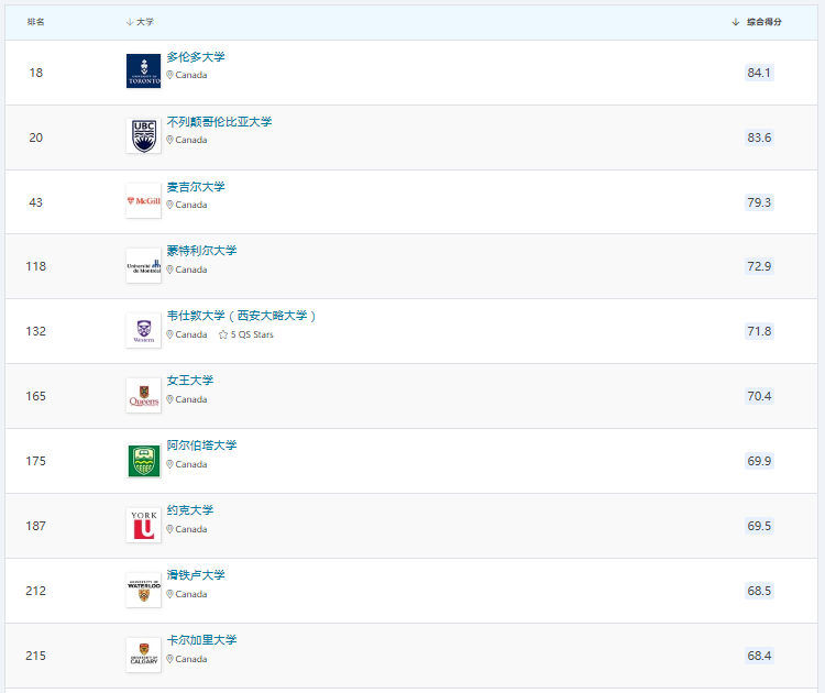 加拿大学科排名QS学科排名是根据不同高校的学术声誉、雇主声誉、每篇论文的研究引文率、H指数四大指标来进行排名的,调查对全球1440所大学中的13883个不同专业进行了独立的比较和分析。