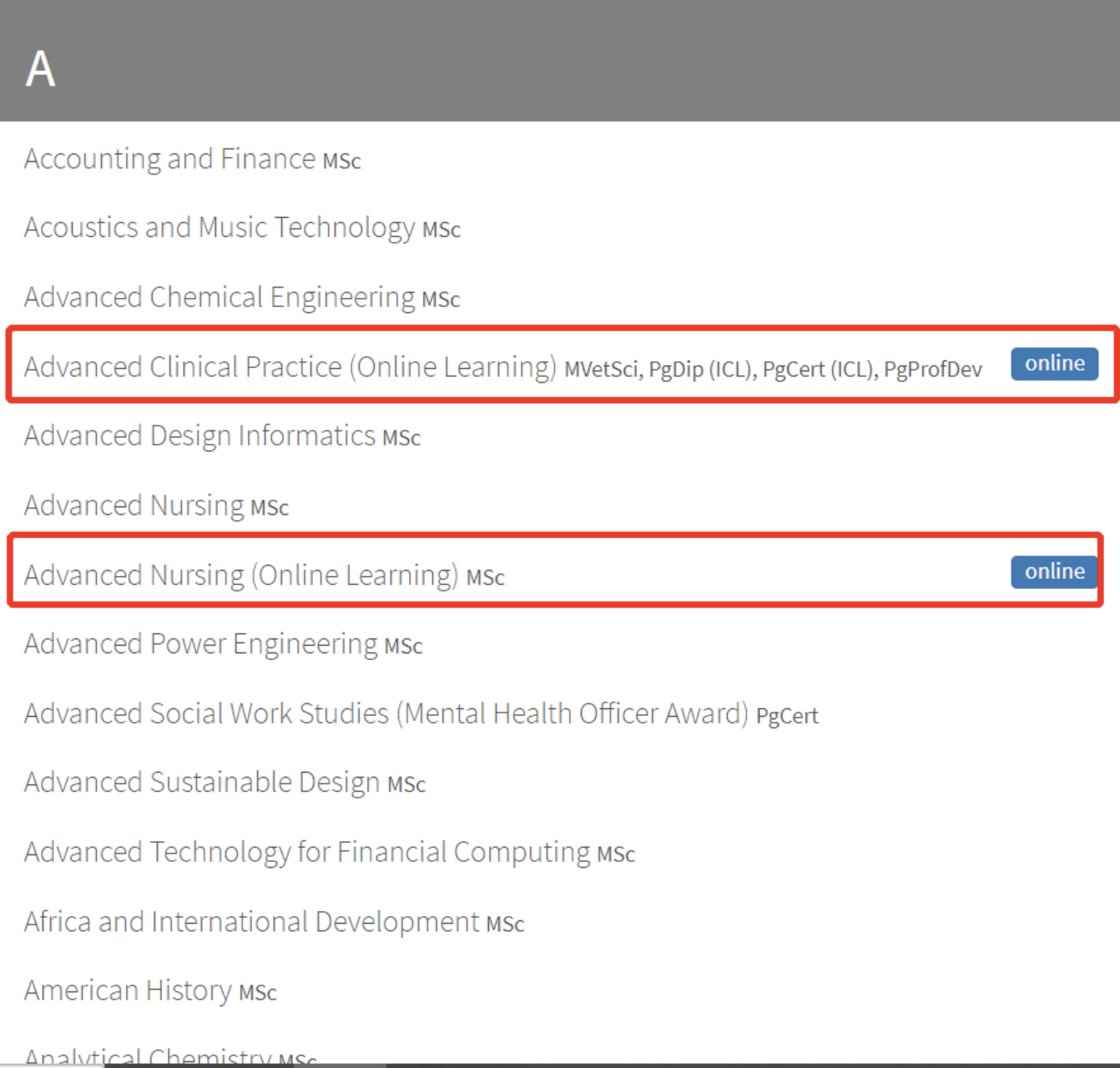 以爱丁堡大学为例,它是有专门开设“研究生在线课程”专栏,区别于本身的研究生全日制课程。在这个专栏里的课程,虽然你也可以参与学习,但是学习完成后获得的学位将不能在国内教育部受到认证。