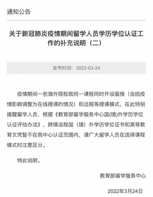 起因是教育部留学中心发布的(关于Covi期间留学人员学历学位认证工作的补充说明)