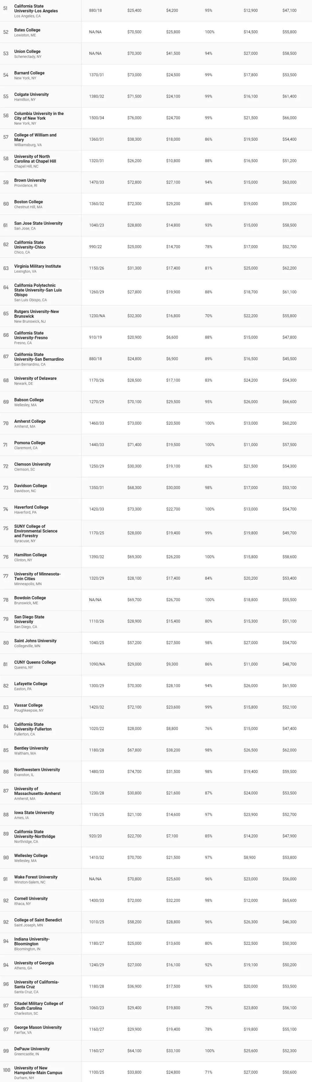 性价比最高大学Top100看下图