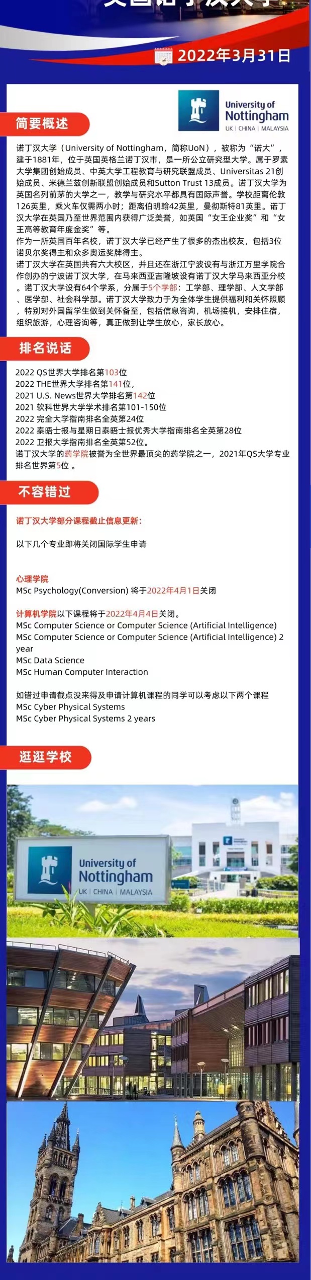 诺丁汉大学,属于罗素大学集团创始成员、中英大学工程教育与研究联盟成员、Universitas 21创始成员