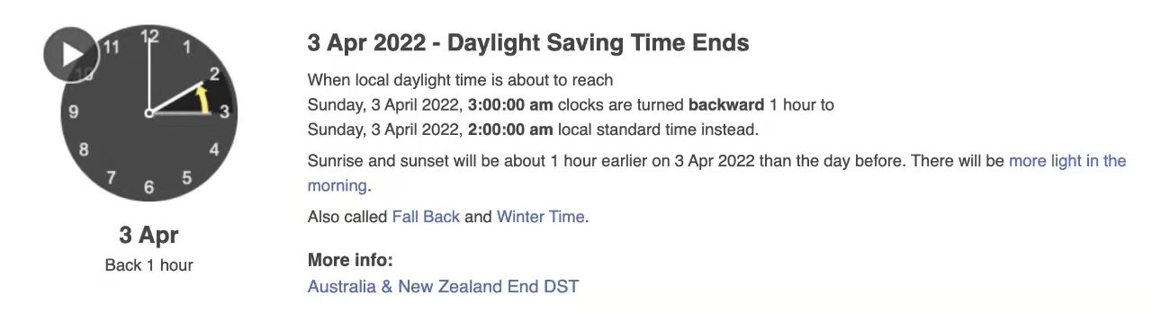 其次就是在澳洲的小伙伴,4月2日也就是明天,你们将会有25个小时的时间