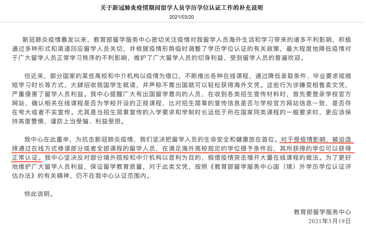 所以大家是因为疫情原因在国内或者国外上网课,这个是完全可以认可的,大家不必担心学历不受认可!!!