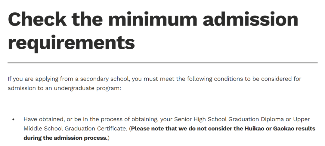 不过,加拿大不同大学之间的招生规则也都是独立的,并没有一个全国统一化的要求。 这也造成了加拿大不同高校对中国普高学生的高考成绩有着不一样的要求。
