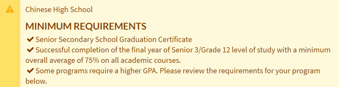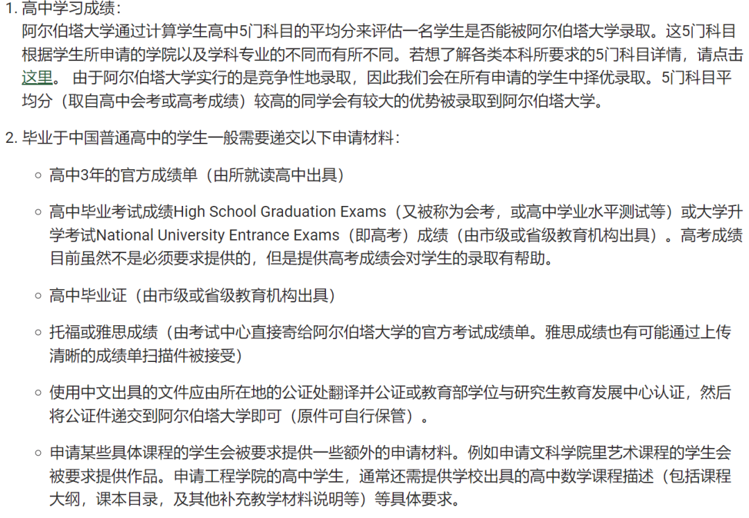 阿尔伯塔大学非常贴心地用完整的中文页面给大家介绍普高的录取要求,话不多说,我们可以 直接看官方的表述:
