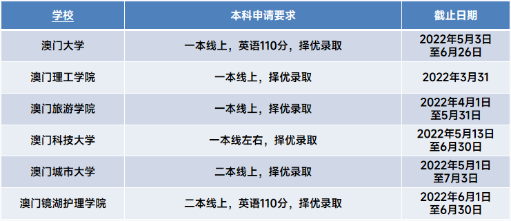 都说高考是“千军万马挤独木桥”,2022年的高考马上就要来了,最近家长来港隽咨询澳门本科留学的问题。澳门的大学采取的录取方式均是自主填报志愿, 不占用国内志愿名额 。因此报考澳门的大学对高考生来说是一个 “双保险” 。