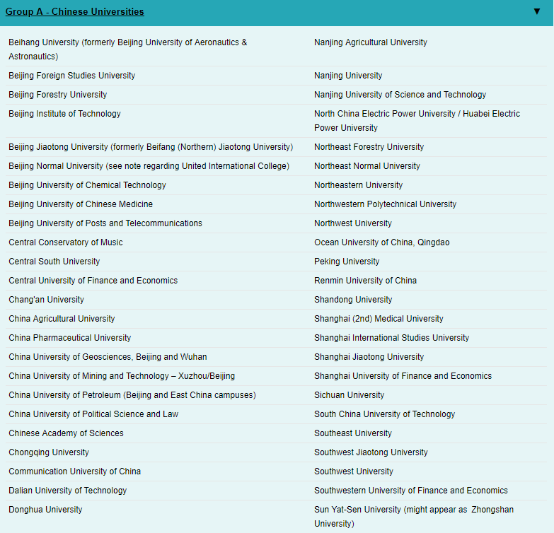 UCL这次的名单把中国认可院校分成了A、B、C三类,有36个985、211名校竟然不在A类,有32个都是C类!并且还有一所双非院校在A类之中!
