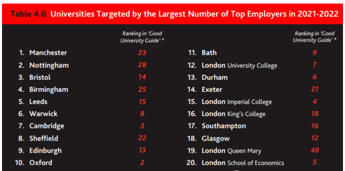 其中最受英国百强雇主青睐的20所大学依次是: