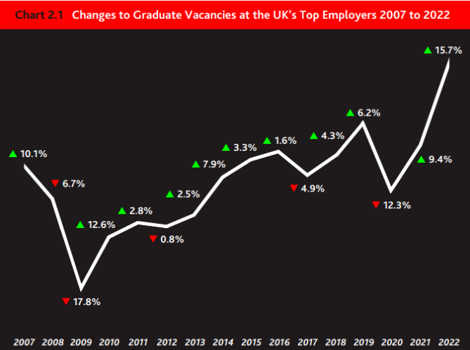 2022年提供的毕业生工作岗位数量预计将进一步增加15.7%,这是近15年以来招聘毕业生数量增长最大的一年。