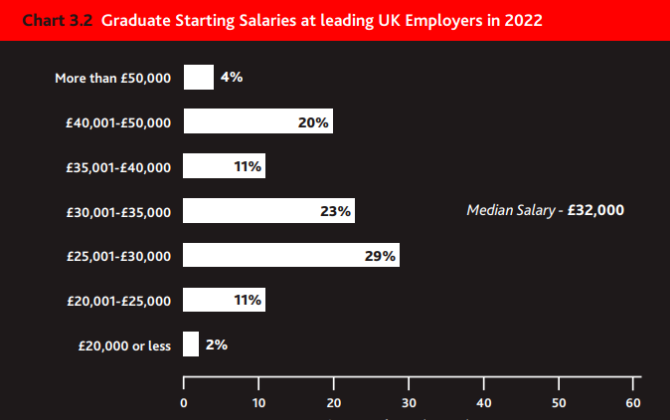 但报告显示,英国知名雇主提供的毕业生起薪中位数预计将在2022年上升到32,000英镑。