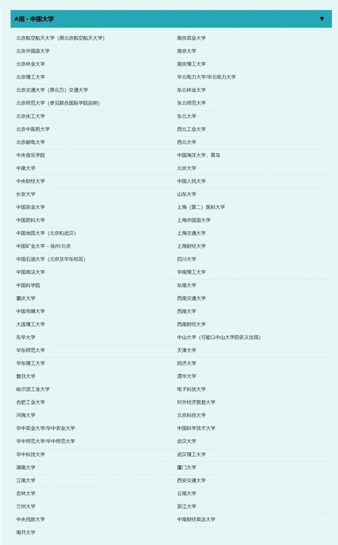A组名单由学校相关委员会审核,包括大部分985、211和双一流大学,但有36所985和211不在名单之中!