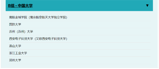 B组名单一共有7所,分别是南航金城学院(南京航空航天大学独立学院),国防大学,苏州大学,西安电子科技大学,燕山大学,浙江工业大学和郑州大学