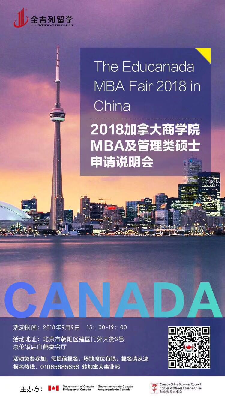 2018年9月9日即将迎来非常难得的加拿大商学院MBA及管理类硕士的申请说明会,由加拿大大使馆主办,很多知名大学如加拿大排名第一,世界排名第28的多伦多大学校方代表也会参加说明会!与会的还有其他各个大学的校方代表,说明会上你会受益匪浅的,给你一个一对一跟学校代表接触的机会,带着你的问题来吧!