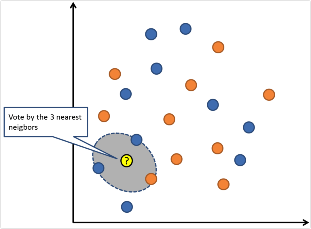 通过搜索整个训练集内K个最相似的实例(邻居),并对这些K个实例的输出变量进行汇总,来预测新的数据点。对于回归问题,新的点可能是平均输出变量,对于分类问题,新的点可能是众数类别值。