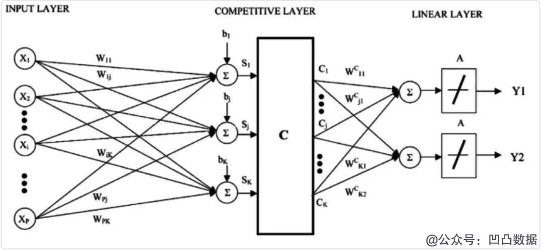 LVQ用coebook向量的集合表示。开始时随机选择向量,然后多次迭代,适应训练数据集。