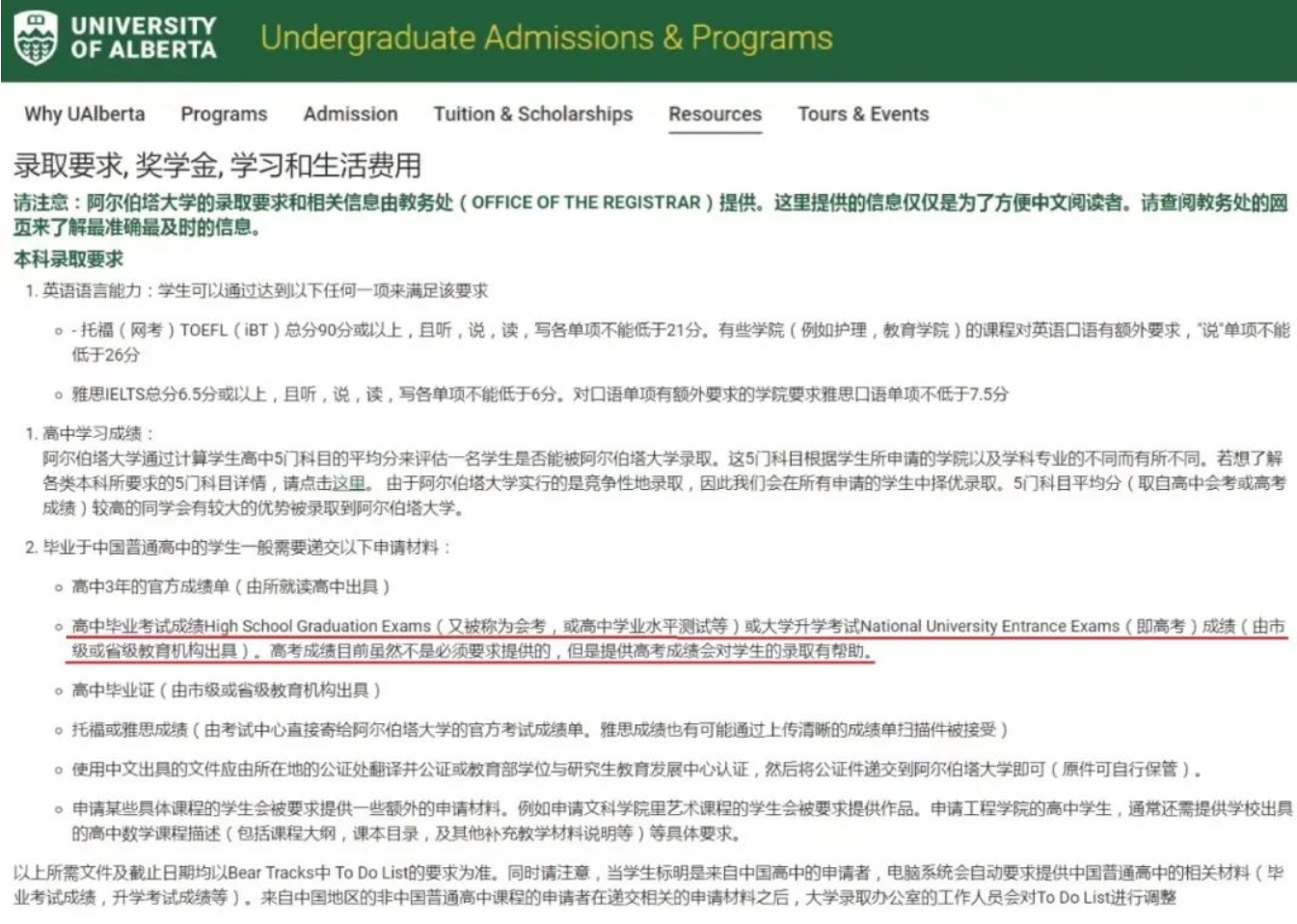 不列颠哥伦比亚大学(UBC)要求普高申请者必须提供会考成绩或高考成绩,且需要完成学信网认证。与多大要求相同,UBC也是要求高考成绩必须达到一本线以上。