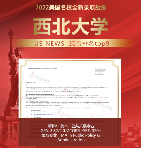 录取结果:西北大学(全美第9)公共政策与管理硕士