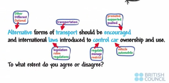 各个段落要明确地区分开来,并为每段设定一个主题 ,这样可以全面地阐述自己的观点。当描述信息时,可以 尝试用不同的动词和形容词, 彰显自己的词汇多样性。可以画一条线,写上代表程度变化的多个词语以应用在写作中。