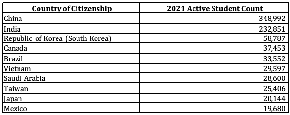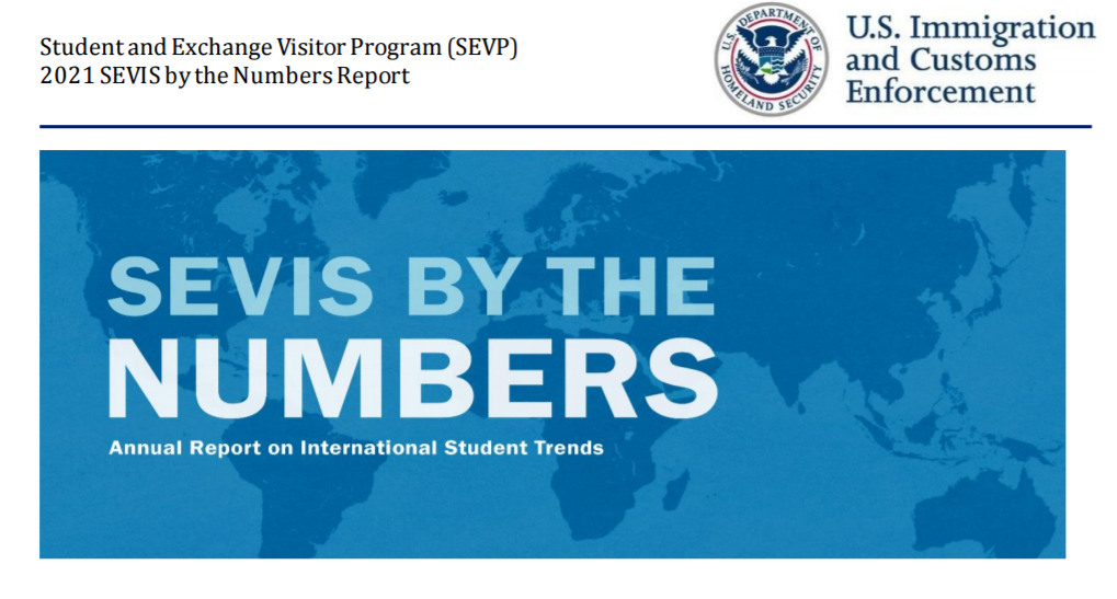 近日 ,美国联邦移民和海关执法局(ICE)发布了 2021年度学生及交流访客项目(SEVP)年 度报告 。 这份报告基于在美留学生、交换访问者以及家属的信息,反映了 美国官方对赴美留学生和访问学者的人数统计情况。