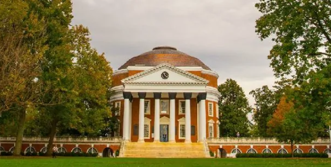 作为由美国第三任总统托马斯·杰斐逊于1819年创建的美国历史上首个独立于教会的高校,弗吉尼亚也是第一所有哲学、天文、建筑、政治科学和植物学细分专业的大学,还是美国唯一一所收录于美国教科文组织世界文化遗产名录的大学。由于学校在小镇中,与周边社区联系紧密,有多样的志愿者活动。