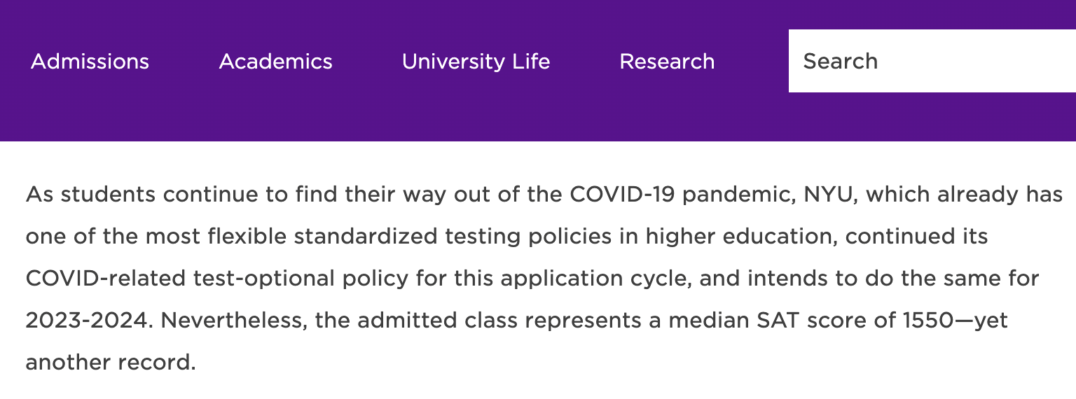 同样突破的还有NYU申请者的SAT分数,去年录取NYU的学生SAT中位数竟然达到了惊人的1540,而今年则直接变成1550。