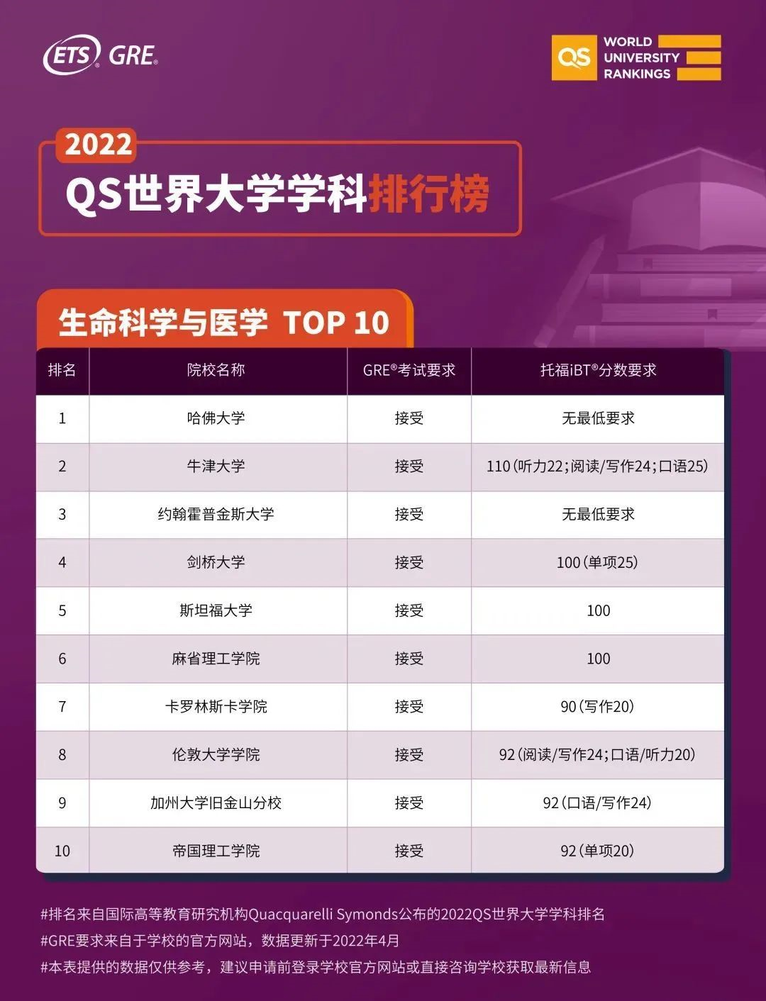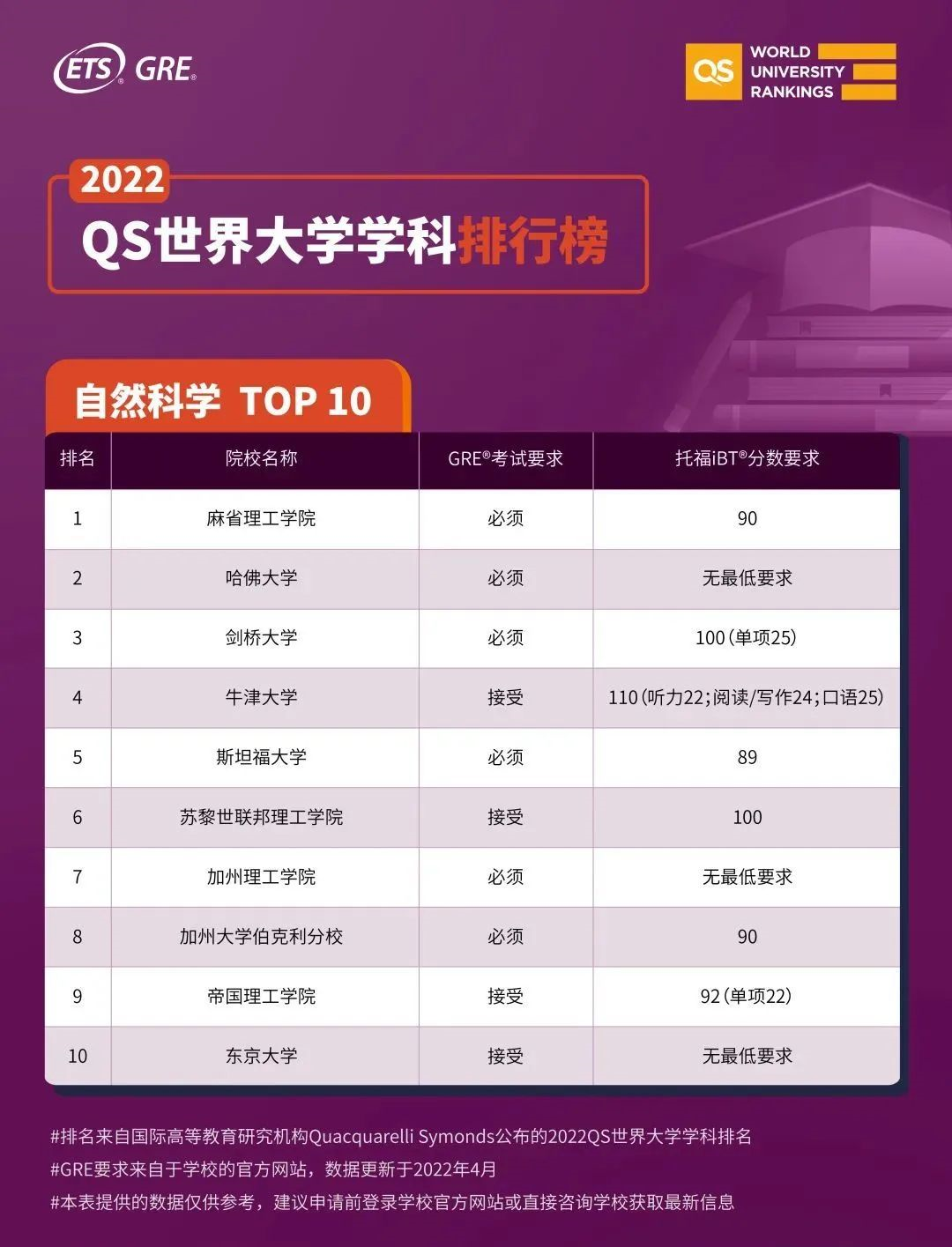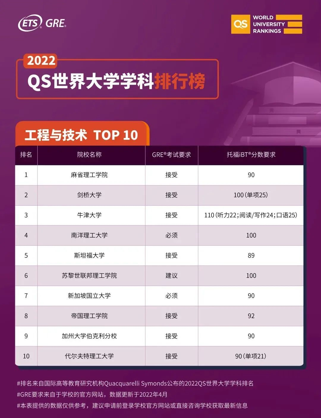 本次上榜的五大学科领域TOP10顶尖学府,全部要求或认可同学们使用GRE®成绩进行申请!快来看看GRE能带你申请到哪些优质院校吧!