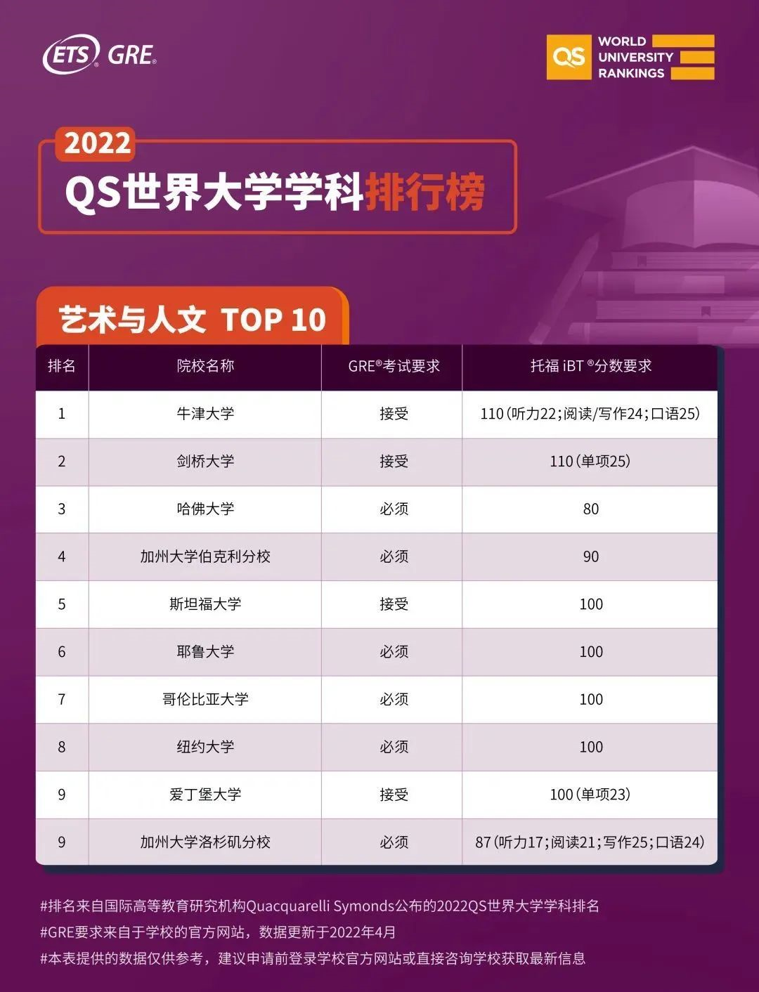 想前往英美顶级学府学习艺术与人文课程的同学们,榜单中超半数的院校要求申请者必须提交GRE成绩。