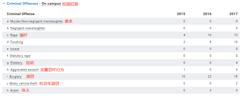 首先就是上文提到的 美国教育部网站,可以进行各个学校安全的比对,也可以搜索学校历年校园内犯罪情况以外,还有安全联系方式。 具体的学校同学可以自行在此网站进行查阅。