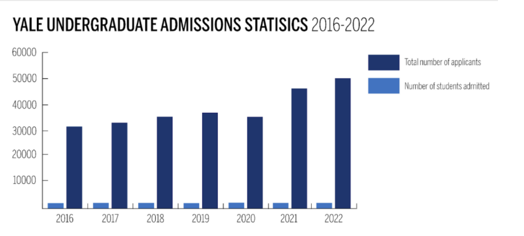 根据耶鲁官网早些时候发布的新闻,今年申请季耶鲁的综合录取率为 4.46% ,为近期历史最低。不过耶鲁的录取率一直在逐年下降: 2025 届的 4.62%;2024 届的 6.54% 还有2023 届的 5.91% ,都在基本保持下降趋势。而今年的申请者数量又比 去年涨了7% 。