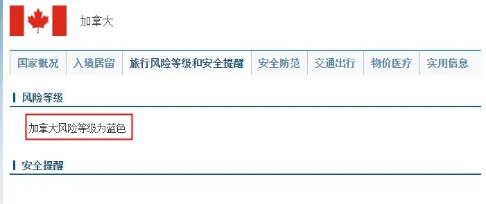中国公布“海外旅行风险评级”:加拿大被列入“低风险”国家! 近日,中国外交部印发《关于公布海外旅行安全风险等级的通知》,对全球各国的旅行风险进行了评估,旅行安全风险等级 分为 红色、橙色、黄色和蓝色四种。