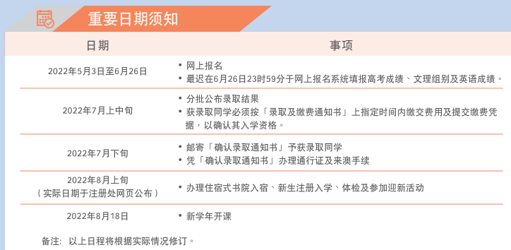 英语要求:申请人2022年高考之英语科成绩必须达110或以上(以英语单科150分制计算,其他计分制将以此比例计算)。