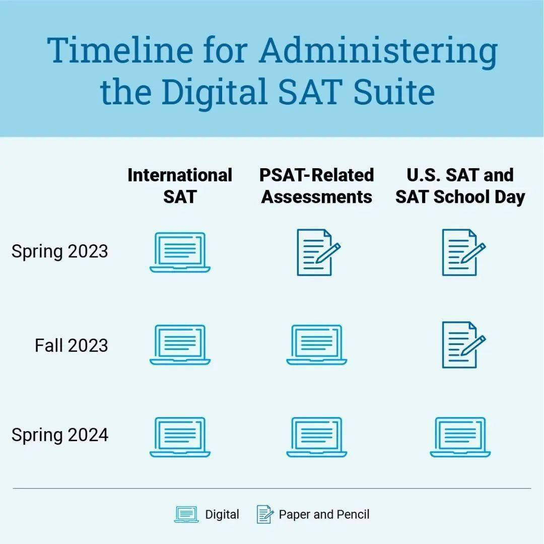 2023年起将在美国以外的其它国家和地区推行,美国本土将从2024年开始从笔考过渡至机考。