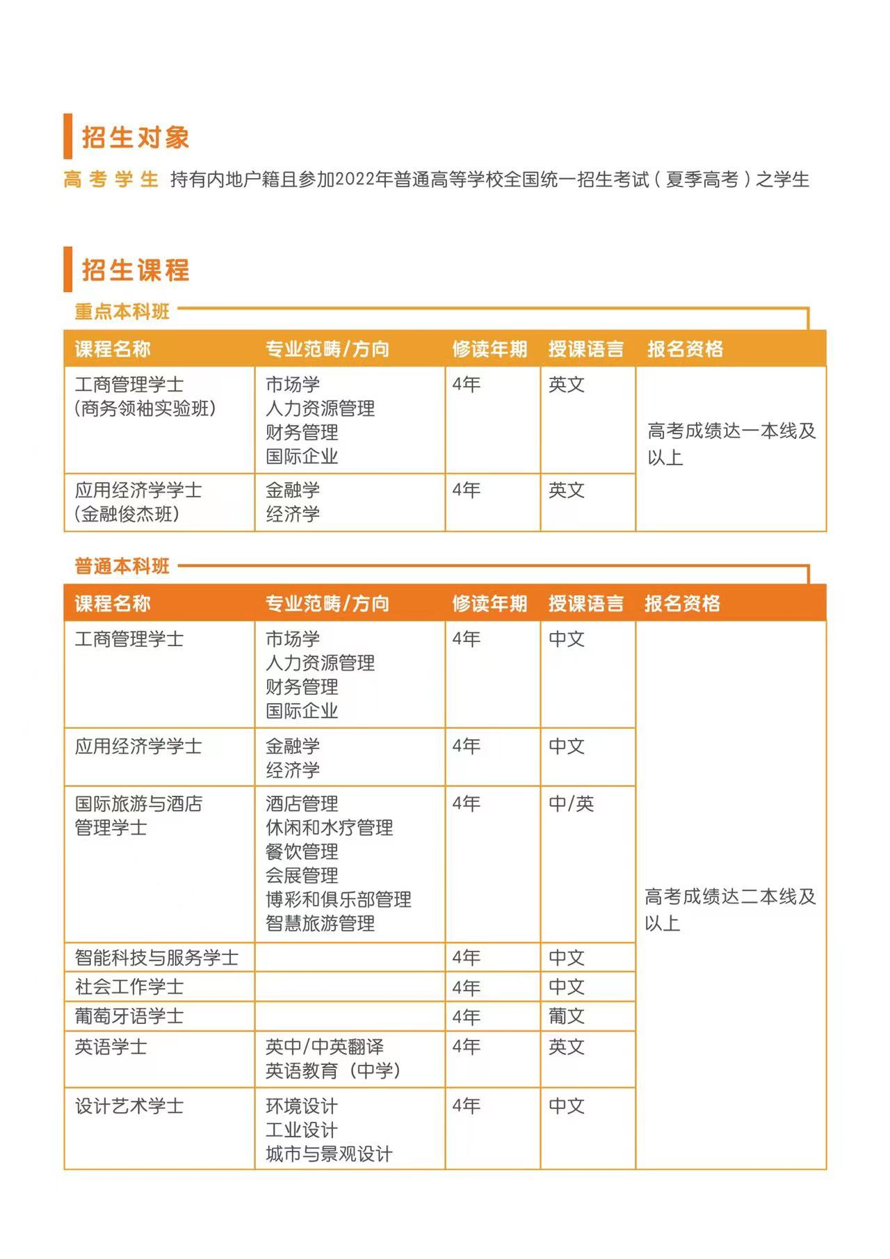 本科生录取专业如下: