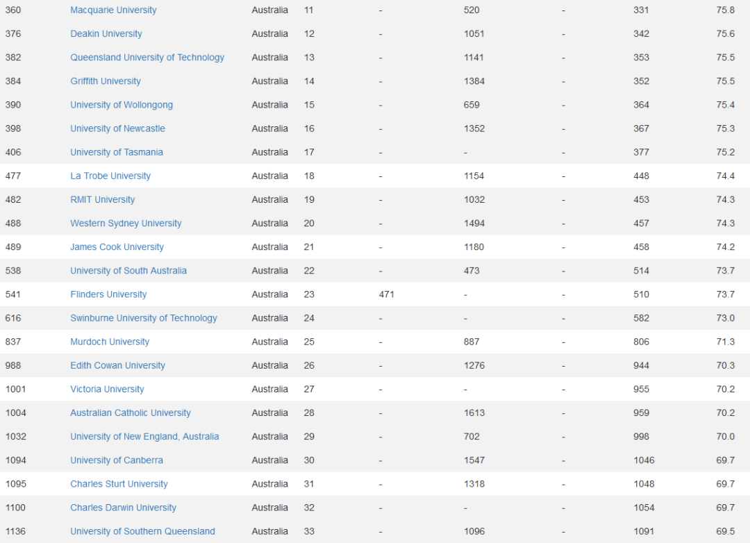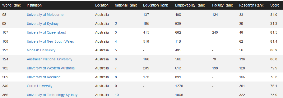 澳洲共有39所大学上榜, 其中2所大学进入世界TOP100,分别是墨尔本大学和悉尼大学!