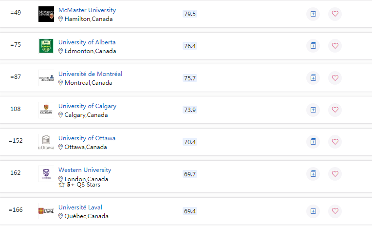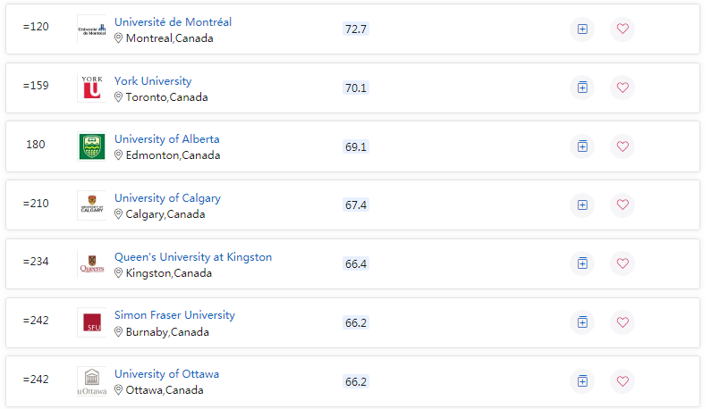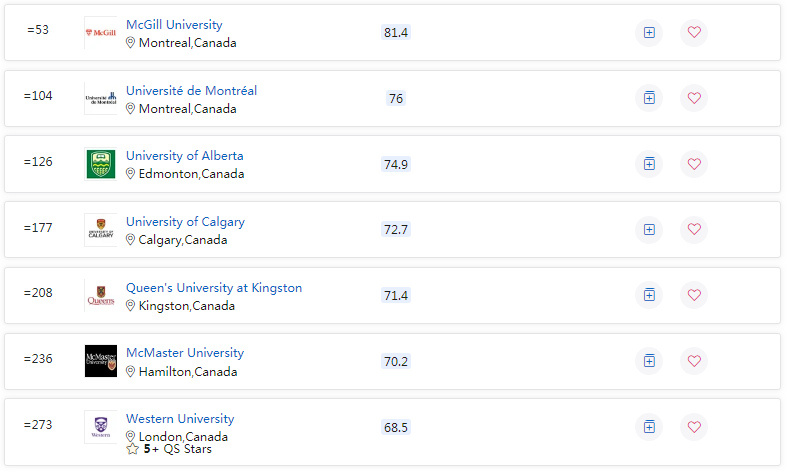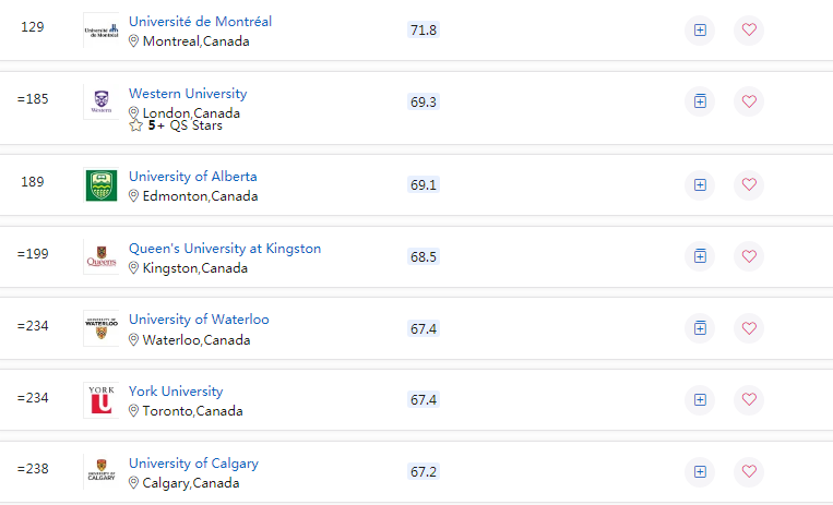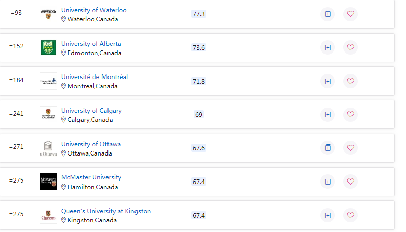 2022QS世界大学学科排名-加拿大学校学科排名如何?