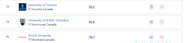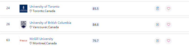 在艺术与人文学科排名下,相比于同档位的中国内地高校,加拿大top3完全是顶尖985的水平。